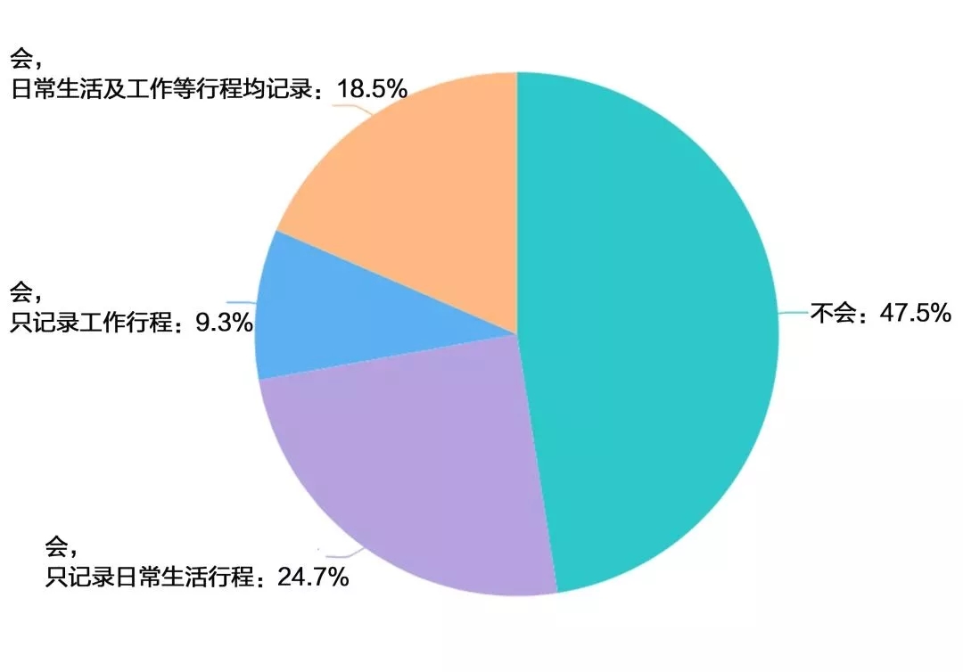 而52.5%的消费者用手机日历功能记录个人行程。其中,24.7费者选择记录日常生活行程;18.5%的消费者记录日常生活及工作等行程。