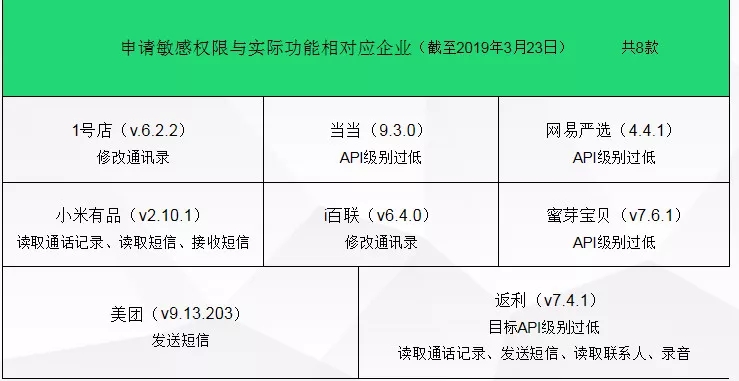 而截止到3月23日,仍有9款应用未能就其权限和功能无法对应的问题进行改进。
