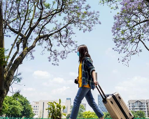 [导读] 5月15日,西南大学校园内的蓝花楹树下,一名学生拖着行李箱向宿舍走去。 当日,重庆西南大学迎来疫情以来首批返校大学生。据介绍,按...
