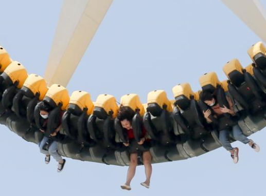 [导读]5月19日,武汉欢乐谷,游客体验游乐项目。当日,武汉欢乐谷正式恢复开园。