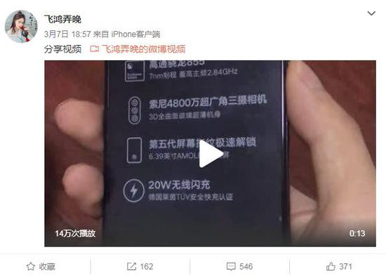但这名网友发的“错版”小米9图片遭到的很多网友的质疑,不少人怀疑图是P的,于是当事人又放出了一段上手视频加以澄清。