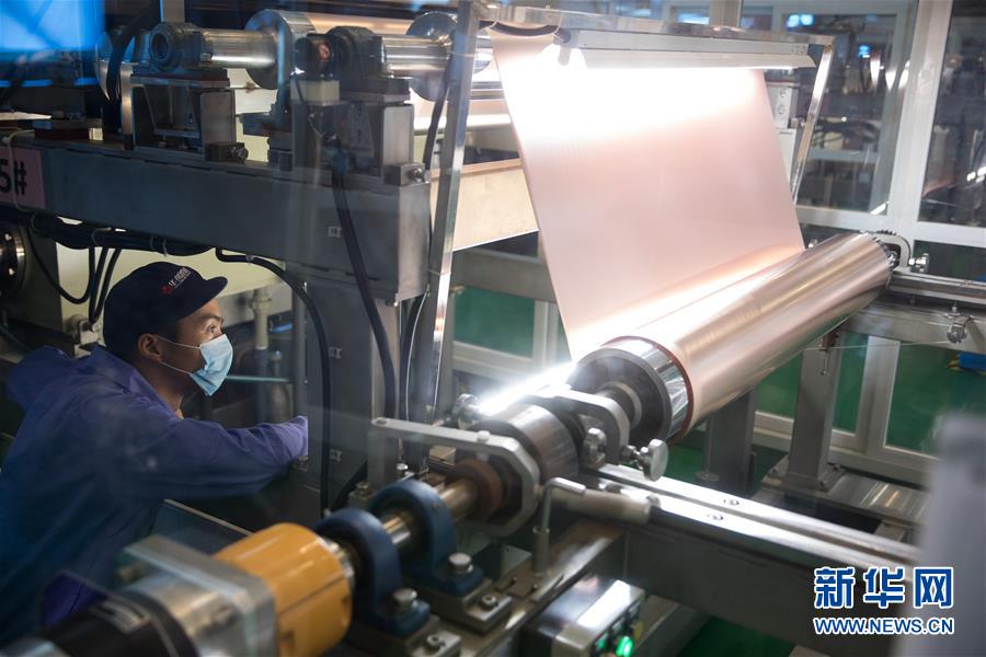 在安徽省铜陵市华创新材料有限公司生产车间,一名员工在监测锂电铜箔生产过程(2018年8月8日摄)。新华社记者 金立旺 摄