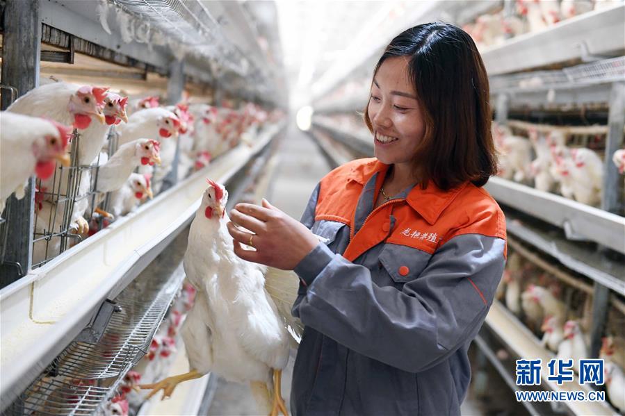 在云南省镇雄县五德镇渡船坝社区,返乡创业的刘艳在养殖场查看优质蛋鸡(2018年6月4日摄)。新华社记者 杨宗友 摄