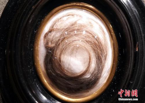 这缕头发用一根丝线固定,装在一个19世纪的椭圆形框架中。