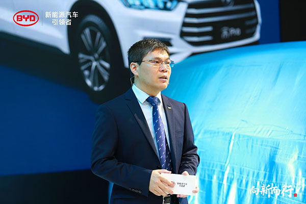 车展首日,比亚迪汽车销售有限公司营销副总监任建军在展台现场致辞:“比亚迪与全国人民一同庆祝伟大祖国70周年华诞。作为优秀本土企业代表,比亚迪已经完成了在造车工业由‘量变到质变’的跃升,在技术、智能、性能、销量、行业合作等方面均有长足突破。“