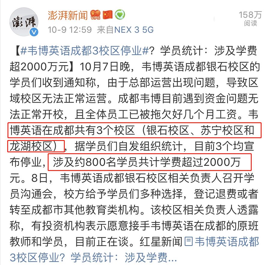 韦博英语CEO最新回应:亏大了,钱还不起?