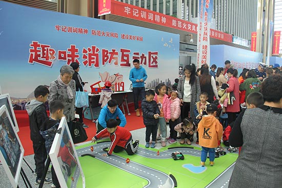 今年的启动仪式设置了消防活动展区、消防救援演习和“消防安全大巡行”三大主题模块,极大的丰富了活动的形式和内容,在消防活动展区,分立了建设成果展示区、消防风采展示区、趣味消防互动区、消防文创成果展、智能消防体验区等10个内容各异,精彩纷呈的宣传专区,向参与启动仪式的现场观众全面展示了消防救援队伍改革转制以来突出实战、聚焦打赢的“正规化、专业化、职业化”的崭新形象,通过一年来消防救援队伍在灭火救援、火灾防控等方面成果展示,全面描绘了一幅新时代消防救援队伍牢记训词精神,尽心竭力为民服务的“最美火焰蓝”的精彩画卷;通过乐高积木、绘画作品等深受广大群众喜爱的方式宣传了家庭防火的基础知识;此次活动紧跟科技文化的发展成果,在现场精细布置了智能机器人互动展区和H5消防知识智能答题挑战赛环节,通过人机AI对话,交互式地将消防元素融入到科技发展成果之中,综合运用网络科技的创新成果,实现线上线下智能互联的全新体验,成为了活动的一大亮点。此外,活动还专项设置了消防安全主题的卡通人物形象在会场与参观群众进行亲密互动,引导群众参与消防安全知识有奖答题,参与现场绘画、剪纸创作等文创活动,极大地增强了活动现场的趣味性。