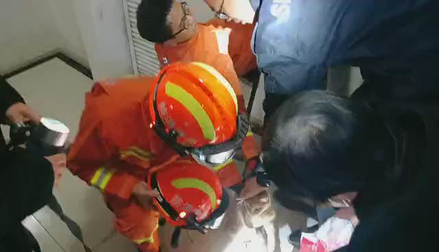 小猫掉入通风管道 主人求助消防员