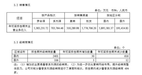茅台三季报显示,截至9月底,包括茅台酒和系列酒,茅台共拥有2507家经销商,其中国内2401家。