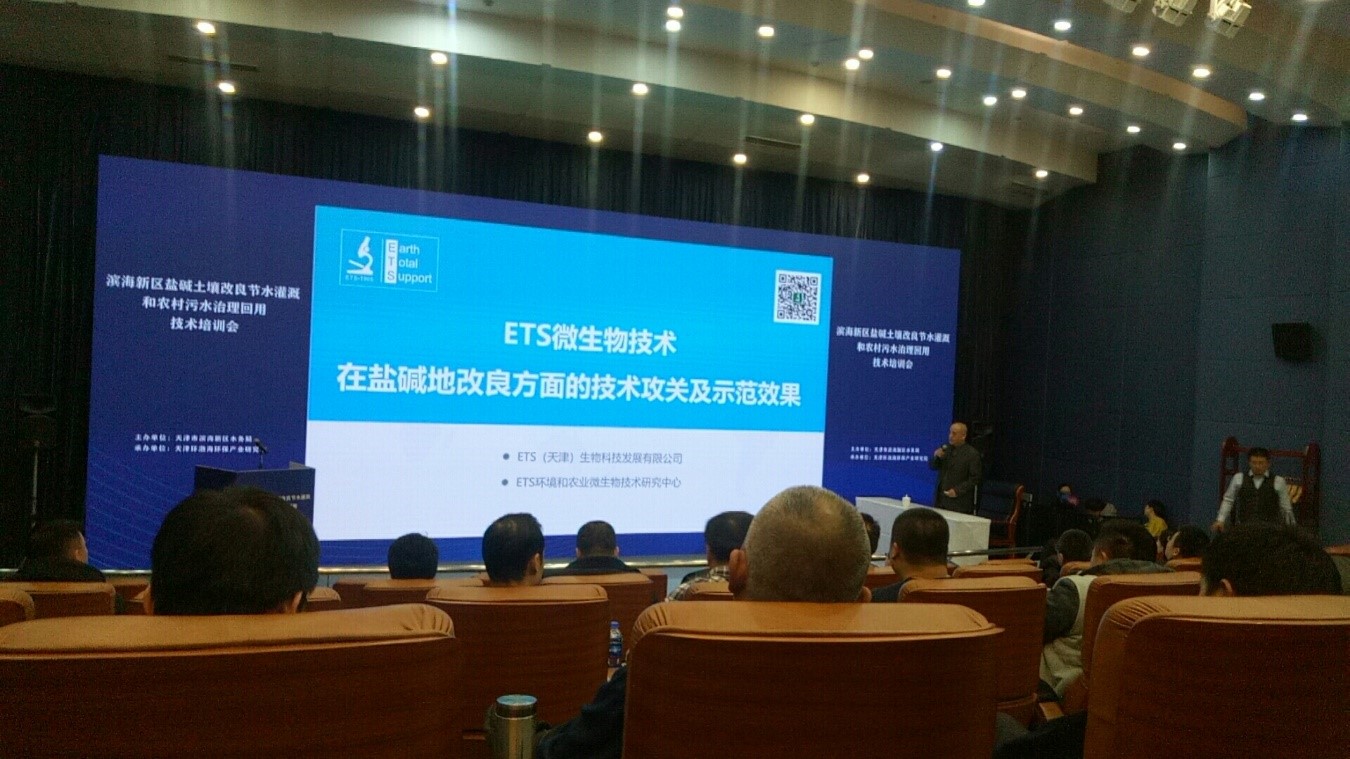 本次培训首先由“国家863计划”及“国家十二五计划”国家重大项目课题主持人、中科院ETS生物技术研究中心研究员、河南省水环境模拟与治理重点实验室学术委员会委员、ETS天津生物科技发展有限公司董事长刘长生先生作题为《ETS微生物技术在盐碱地改良方面的技术攻关及示范效果》主旨报告。他指出天津滨海新区盐渍土面积1958.9km2,占滨海新区土地总面积的86.3%,具有缺水、土壤含盐量高、土质黏紧,透气性不良等特点,我市滨海地区一直被称为“绿色禁区”。对此刘长生先生为与会嘉宾展示了由科技部和中科院联合环渤海四省(市)冀、鲁、辽、津共同组织实施的国家“十二五”科技支撑计划课题,并介绍了相关技术及成果,包括1500万亩粮田、棉改粮100万亩、整治盐碱土地20万亩,粮食增产30亿斤,该技术为保障国家粮食安全作出重要贡献。