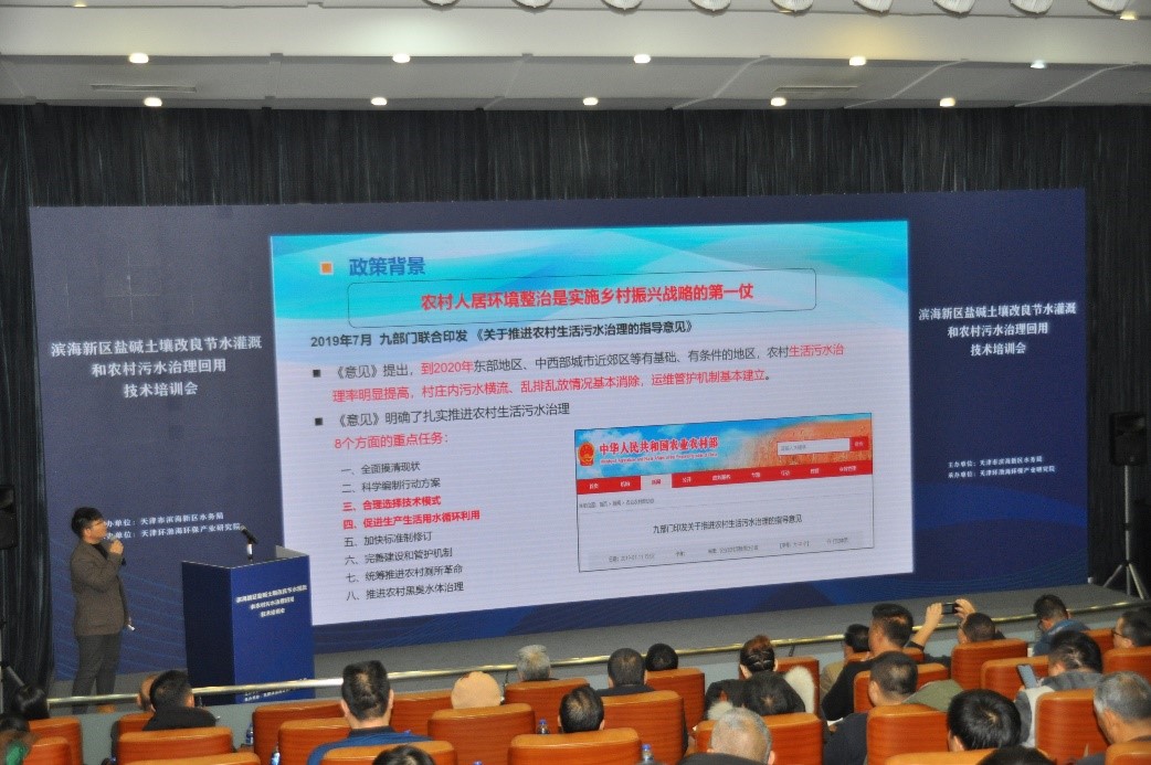 为破解新区农业种植水源不足,土壤盐碱化严重困境,助力乡村振兴发展,12月19日,由天津市滨海新区水务局主办、天津环渤海环保产业研究院承办的“滨海新区盐碱土改良节水灌溉和农村污水治理回用技术培训会”在新区召开。天津市委农办助力乡村工作组、天津市规划与自然资源局滨海分局、滨海新区生态环境局、农业农村委、水务局、各街镇负责同志及相关企业代表、农业种植用水大户90余人参加会议。