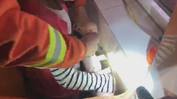 小女孩手卡暖气片,消防迅速救援