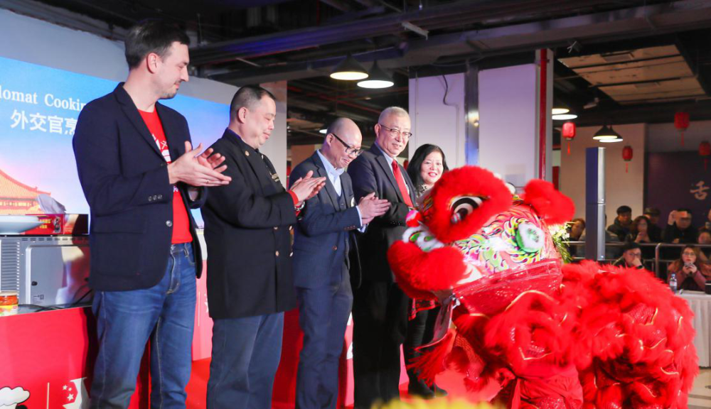 活动开始,瑞安威尼都运营总经理李国威先生登台致辞,随后中国烹饪协会代表杨春晖、瑞安威尼都运营总经理李国威、中国国际教育电视台台长李世强、外交官代表白俄罗斯、外交官杂志主编任家语等嘉宾上台在锣鼓声中给舞狮点睛。