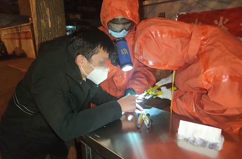 正值防疫期间,福建路消防救援站严格履行防疫程序,首先对求助男子及朋友进行体温检测,询问是否有接触过确诊、疑似新冠肺炎患者及是否去过危险区和隔离区,待确认无上述情况后,指战员将求助群众带到安全区。指战员做好个人防护后,先在戒指和手指缝隙处垫上一个卡片,然后利用钳子将戒指慢慢剪断。18时52分,戒指被安全取下,处置完毕后,指战员对安全区、装备器材及防护装备进行全面细致消毒。通讯员:魏英博、刘贤辉