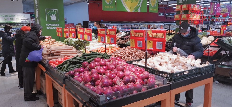 <图:疫情期间全国各地沃尔玛门店坚持无休,商品供应充足。>