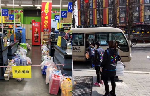 <图:沃尔玛在武汉实行 “社区到家”服务,批量派单集中配送,直达社区>