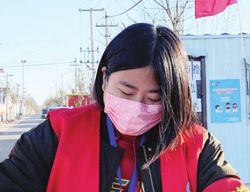 杨秋静在小杜庄村口值勤,整理进出村人员信息。肖荻 摄