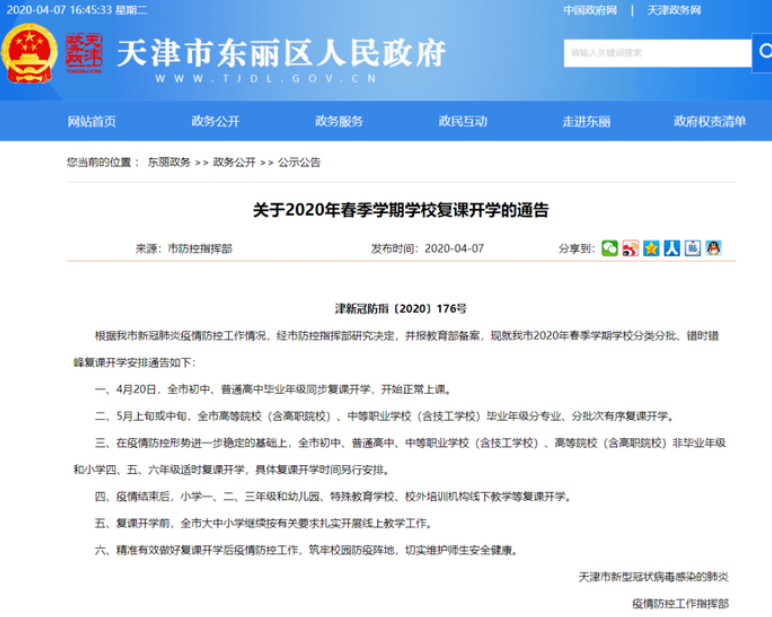 近日,天津市已经公布初高中毕业班开学时间。