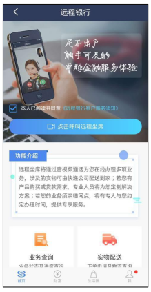 远程银行打破传统网点的服务时间限制。每日9:00至21:00通过手机 APP,接通远程柜员,即可办理 100 多项个人业务.如果业务涉及实物,还可由快递公司直接配送到家。有产品购买或者贷款需求的客户,也有专业人员制定解决方案,最大程度的满足了客户随时办理业务的需求。