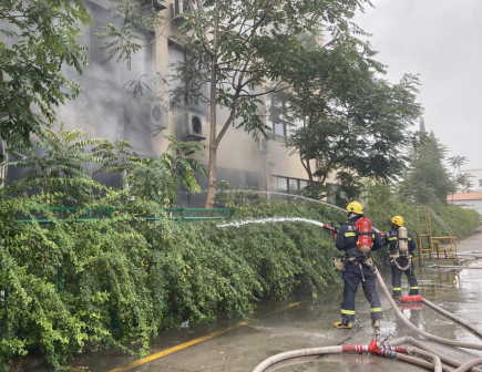 2020年7月27日17时39分,在天津市滨海新区开发区洞庭路与第七大街交口附近办公楼一层西侧办公桌起火,消防员接到报警及时赶到,立即赶往现场扑救。