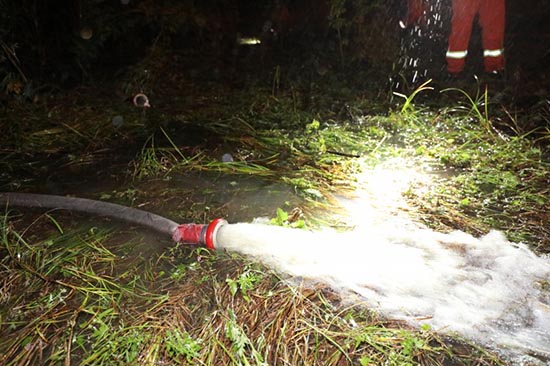 经短暂休整后,总队前方指挥部主动与黑龙江总队对接,领受任务、勘查灾情现场,研究确定了巡堤排险、排水等作战任务。当晚,部署了2个作战分队针对任务点位进行了实地勘察,对现场预估积水量、排水距离、排水路线、吸水点位、道路通行等进行了逐一谋划;会同黑龙江总队积极联系当地负责人提供了当地水流、降水分布,季节性特点等情况,确定了作战方案。其中,7部执勤车、30名指战员,前往松花江江北段区进行巡堤排险作业,累计排查江段15公里;2部龙吸水在内的4部执勤车、25名指战员,前往呼兰区滨水大道低洼处进行排水作业。