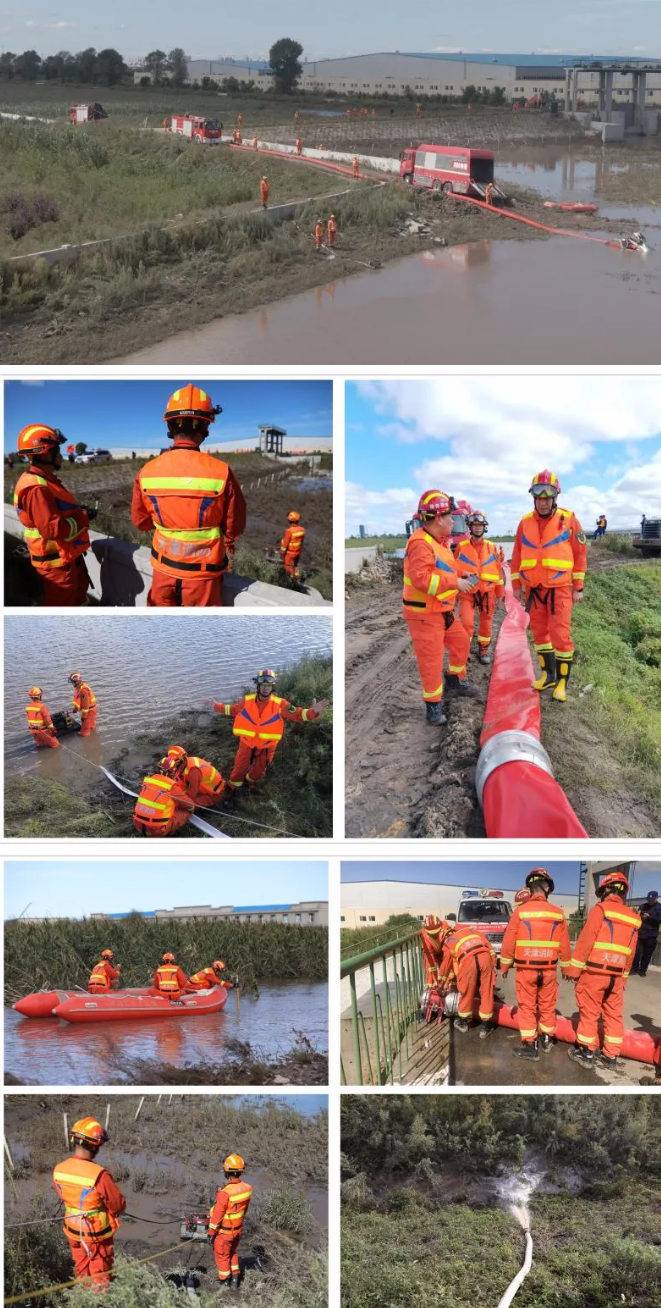 9月9日至13日,天津市消防救援总队跨区域增援黑龙江期间,部消防救援局应放高工到作业点位和前方指挥部,对跨区域增援工作进行了指导。黑龙江总队及佳木斯支队、双鸭山支队与天津消防跨区域增援队伍联勤联战,重点对哈尔滨呼兰区低洼区域、佳木斯郊区中兴村农田、双鸭山市岭东区滨水大道中段农田3处积水点进行排水排涝。天津消防跨区域增援队共部署2部龙吸水、10台机动泵,始终遵循“科学配置、安全施救”原则,采取“开渠引流、排蓄结合”等手段,挂图作战、晾晒进度、轮换作业,昼夜奋战75小时,集中攻坚排涝,共计排水约41.3万吨,成功保护了800亩受淹农田。