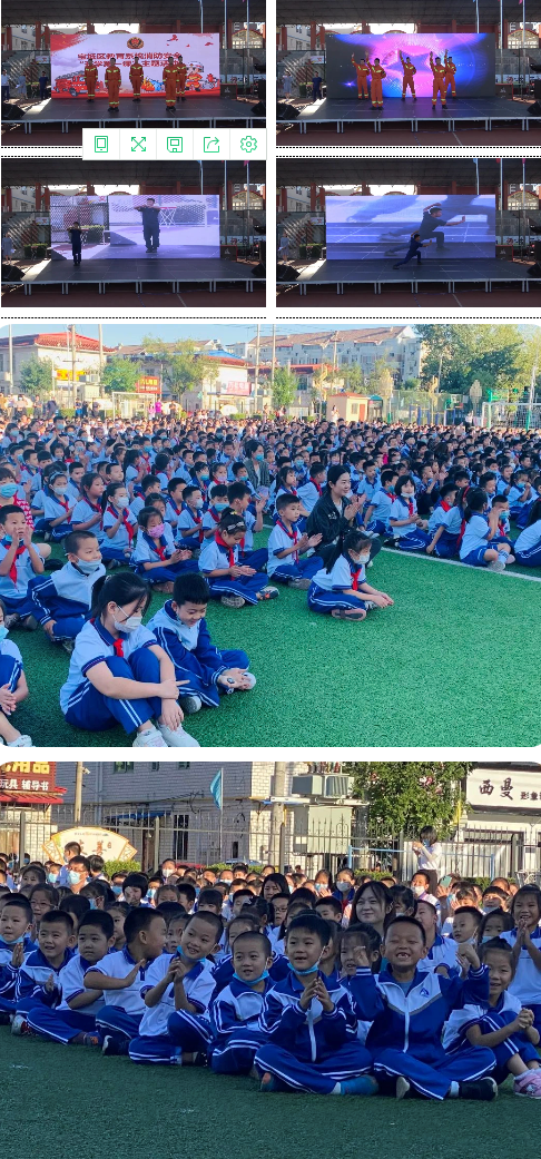 学生清点人数后,丰富多彩的消防安全“开学第一课”主题活动开始啦!消防指战员带来的舞蹈、武术、服装展示、器材展示;小朋友带来的京韵大鼓《消防英赞》和歌曲《听我说谢谢你》迎来了台下小观众的一阵阵热烈掌声和欢呼声,“消防知识一站到底”答题小游戏、变身小小消防员活动和指战员的操法演示更是将现场的气氛一次次推向了高潮。