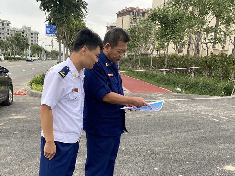 调研中,马若鹏副总队长首先来到了航海路消防救援站,查看了消防站车辆装备、训练设施和营区建设情况。随后前往新建海博道消防站选址地,实地查看了周边地理环境、方位面积、道路交通以及项目图纸设计,听取了海博道消防站前期推动落实进展情况的汇报。最后来到了在建的生态城消防主题公园,听取了主题公园的设计理念及工程进度。