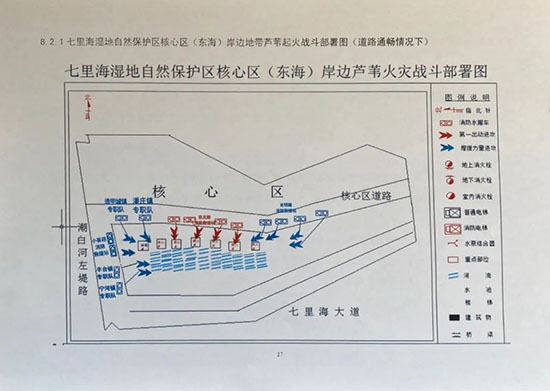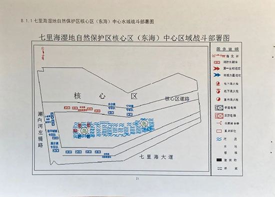 支队先后10余次通过无人机航拍、人员现场考察、消防装备实测等方式,为七里海湿地量身定做了一套应急防灭火预案,预案详细描绘了湿地地形地貌、道路水源分布、灭火力量布置、联动力量展开及应急处置流程,并定期联合核心区管委会及缓冲区各镇开展了消防安全联合演练。