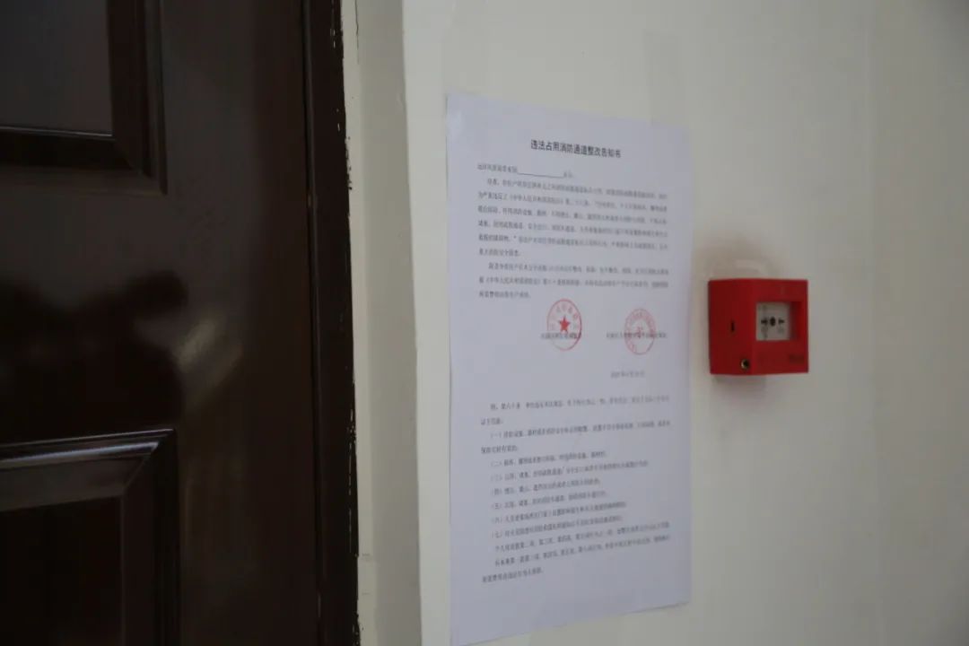 远洋风景小区绝大多数都是高层,每栋楼两个楼门之间楼顶的位置设有消防疏散通道。一旦一个楼门发生火情,居民可以通过这个通道从另一个楼门逃生。经过走访排查,该小区共24户顶层居民私自占用消防通道,摆放杂物,甚至用防盗门将通道锁住。这样一旦发生火灾,后果不堪设想。东丽支队对劝诫后没有主动拆除的业主 ,后与街道政府召开会议,主动作为,张贴拆除公告,让业主限期拆除,不拆除的,由职能部门协助业主拆除。