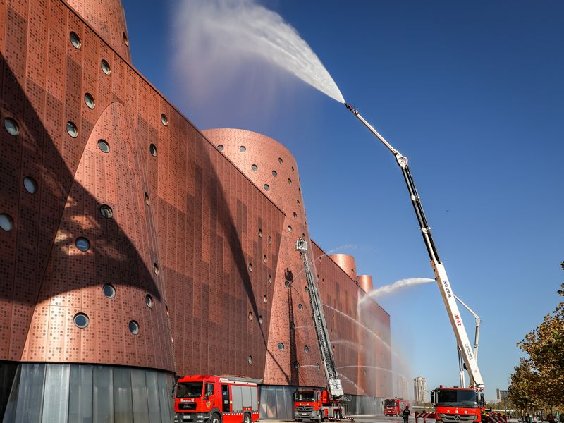 演习假设文化中心东区科技馆三层发生火灾,且内部有多人被困,正值营业时间,巡逻人员发现火情后及时拨打“119”报警,这时火势较大,已突出外壳并向上蔓延。文化中心消防控制室迅速通知有关人员到达起火楼层,利用现有消防装备展开初期火灾扑救和转移人员。辖区消防站到场后,立即进行火场侦查,迅速查明火场基本情况,按照既定预案进行展开。前方作战车号员第一时间占领消防控制室,对逃生人员进行引导疏散,同时出3支水枪,控制火势蔓延,这时增员力量陆续到场,高喷车迅速停靠在文化中心科技馆东侧出口处外部展开灭火,防止火势沿外墙蔓延。后方车座文化中心北侧出两支供水干线接力为前方车供水,同时设立警戒线,云梯车停靠在文化中心科技馆东侧展开,利用云梯车对楼内被困人员进行施救。再确认被困人员被全部救出后支队全勤指挥部下达发起总攻命令,10分钟后火灾被成功扑灭。此次拉动演习共7个消防救援站、10部消防车辆50余名指战员及单位部分员工参加演习,从单位自防自救、力量编成调派、火情侦察、安全防护、固定设施应用、疏散救生、内攻灭火等重点环节,全面提升了指战员精准侦察判断、快速救人灭火、全面设防堵截、班组协同内攻等能力水平。实兵、实战、实装全要素的圆满完成此次演习。