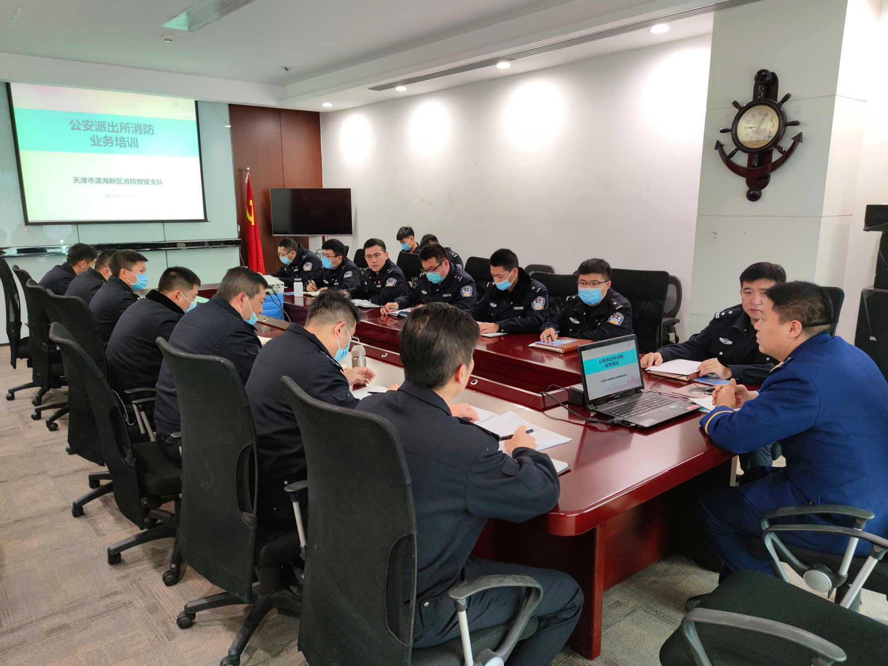 为深入贯彻总队《关于推进落实<国务院安委会办公室关于加强冬春火灾防控工作的通知>的实施意见》的通知的文件精神,落实《关于印发滨海新区消防安全工作协作若干制度(试行)的通知》的工作要求,全面强化公安派出所消防监督业务能力水平,持续夯实冬春季节新区消防安全形势稳固基础,12月4日,滨海支队联合天津市公安局沿海安全保卫总队组织开展了边防派出所消防业务专题培训。