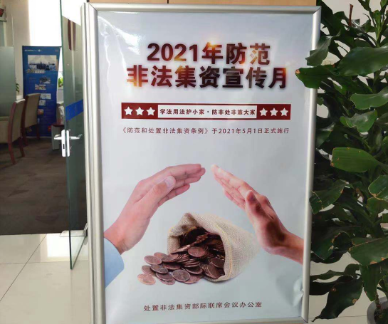 2021年5月1日,《防范和处置非法集资条例》(国务院令第七百三十七号,以下简;称《条例》)正式实施,为促进《条例》的普及实施,使广大人民群众更好的防范非法集资风险,打击非法金融活动,近期民生银行天津分行积极落实防范非法集资宣传活动月系列活动举措。