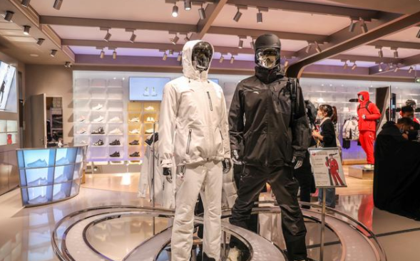 安踏品牌作为中国奥委会的官方合作伙伴,目前已累计为 28 支中国国家队打造奥 运装备,更掌握高达 1400 余项的产品专利。天津万象城的安踏冠军店本次新品体验活动中也隆重展示了两款最新科技新品——安踏冠军系列赛事级专业滑雪服和安踏“超级大白”羽绒服。两款产品均采用国家队同款超强保暖炽热科技,具备热返功能,即将具有热反射功能的银膜(成分为锡箔)印在服装内里上,通过反射人体体温减少热量流失的同时返送热能,热反射辐照升温可提升18%,保证身体核心部位热量。除炽热科技外之外,二者也各有亮点。