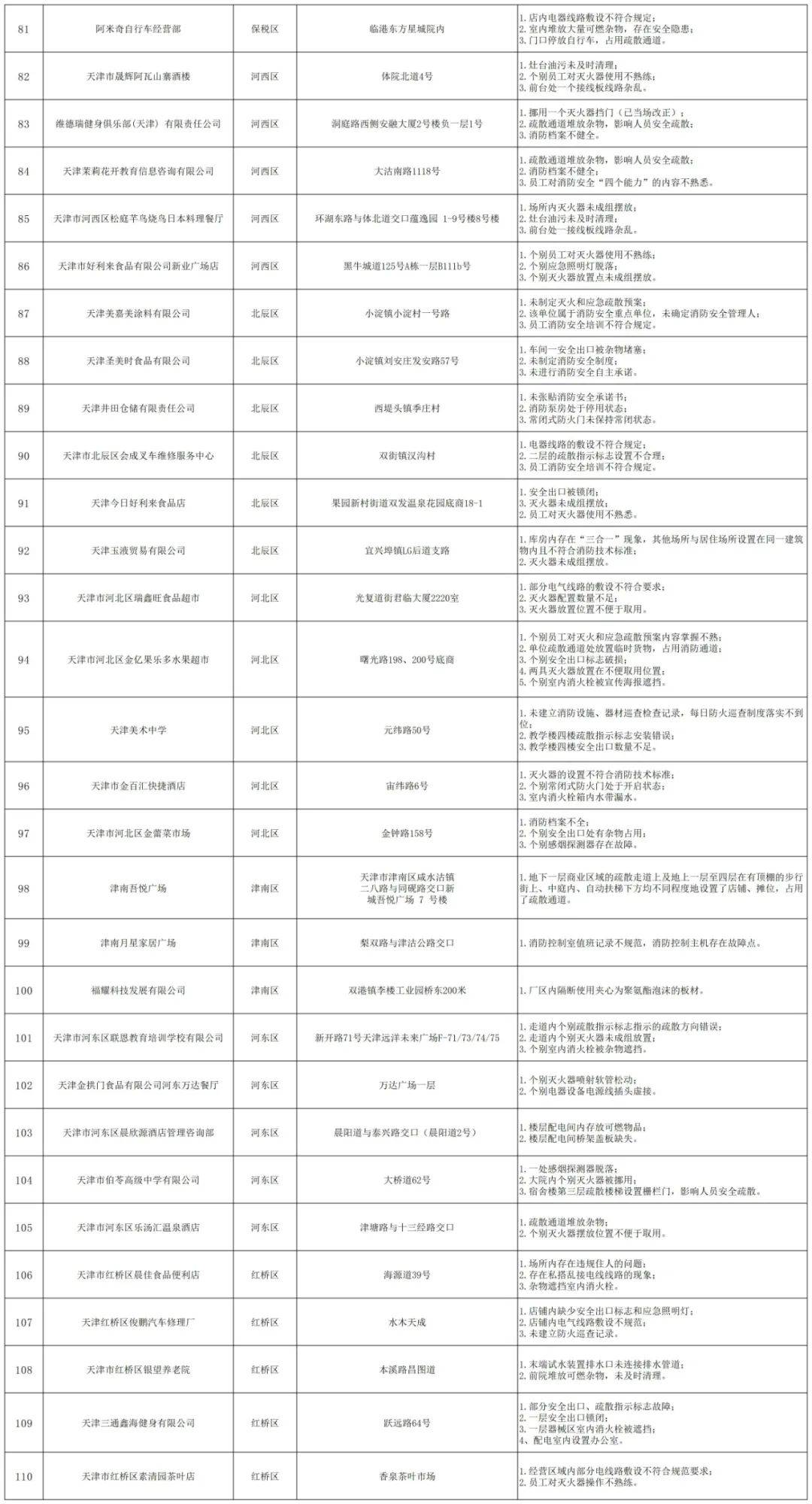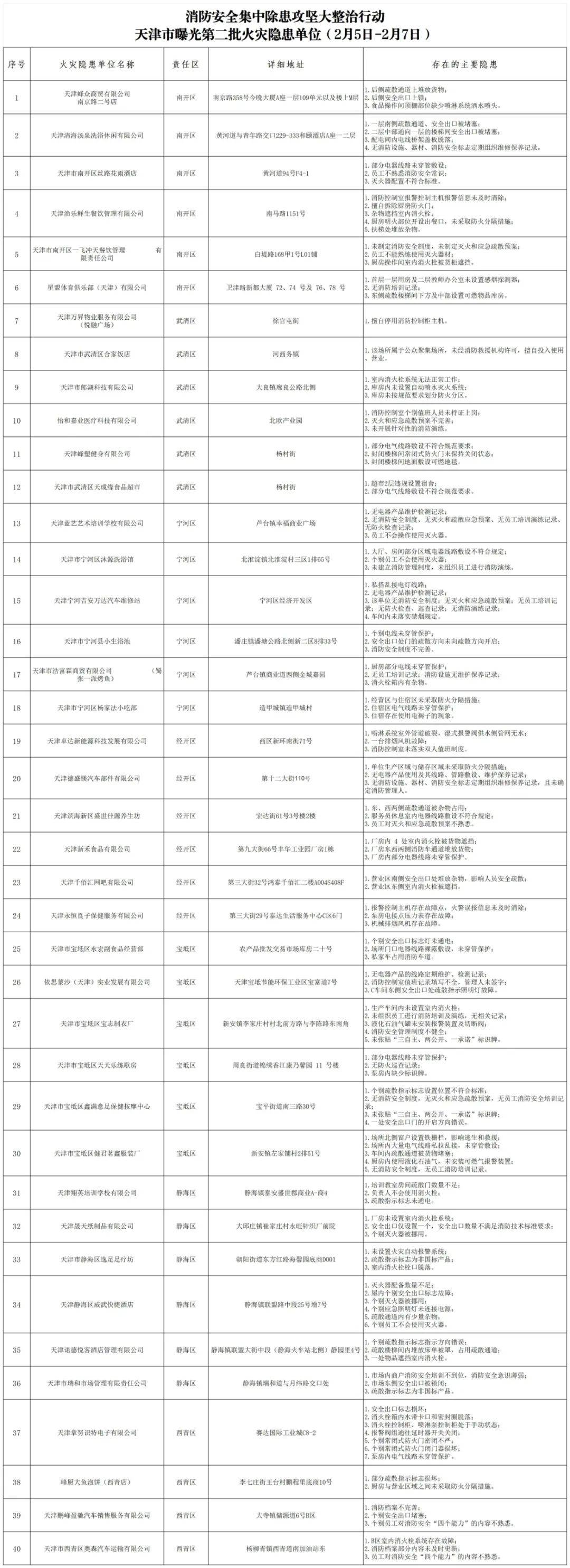 为进一步净化消防安全环境,充分发挥媒体和社会舆论监督作用,促进火灾隐患的整改,现曝光第二批110家火灾隐患单位(火灾隐患为2024年2月5日至2月7日单位)。单位名称如下: