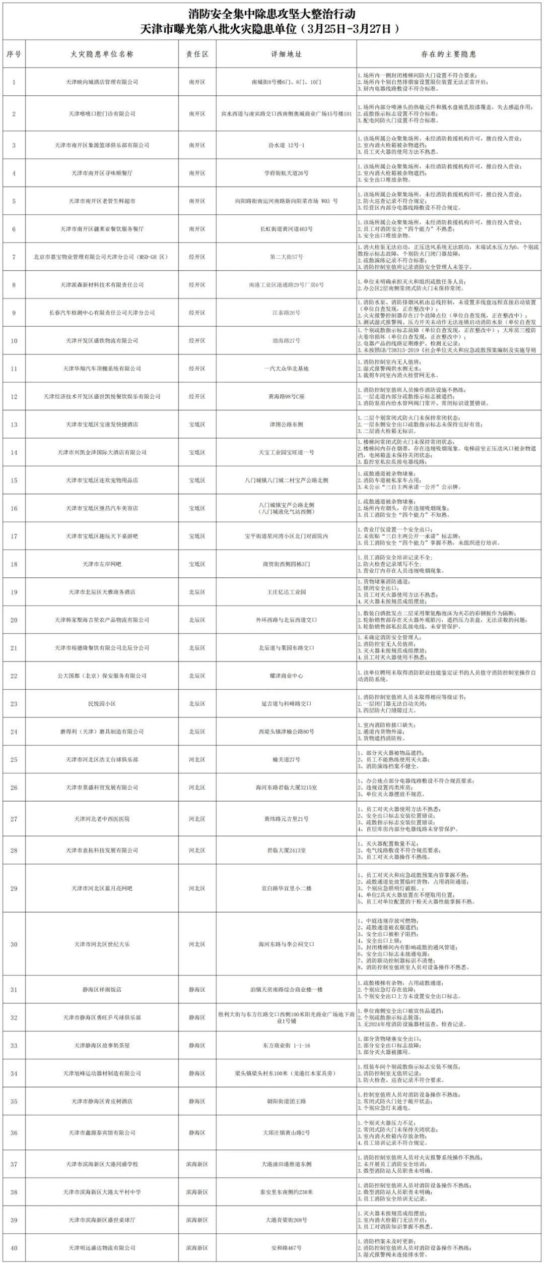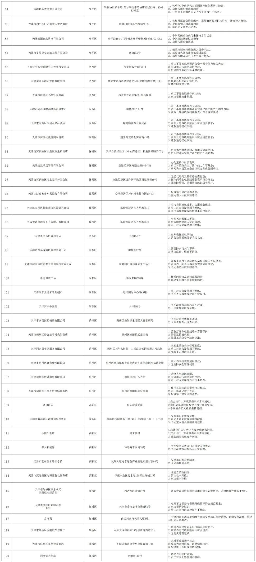 为进一步净化消防安全环境,充分发挥媒体和社会舆论监督作用,促进火灾隐患的整改,现曝光第八批120家火灾隐患单位(火灾隐患为2024年3月25日至3月27日)。单位名称如下: