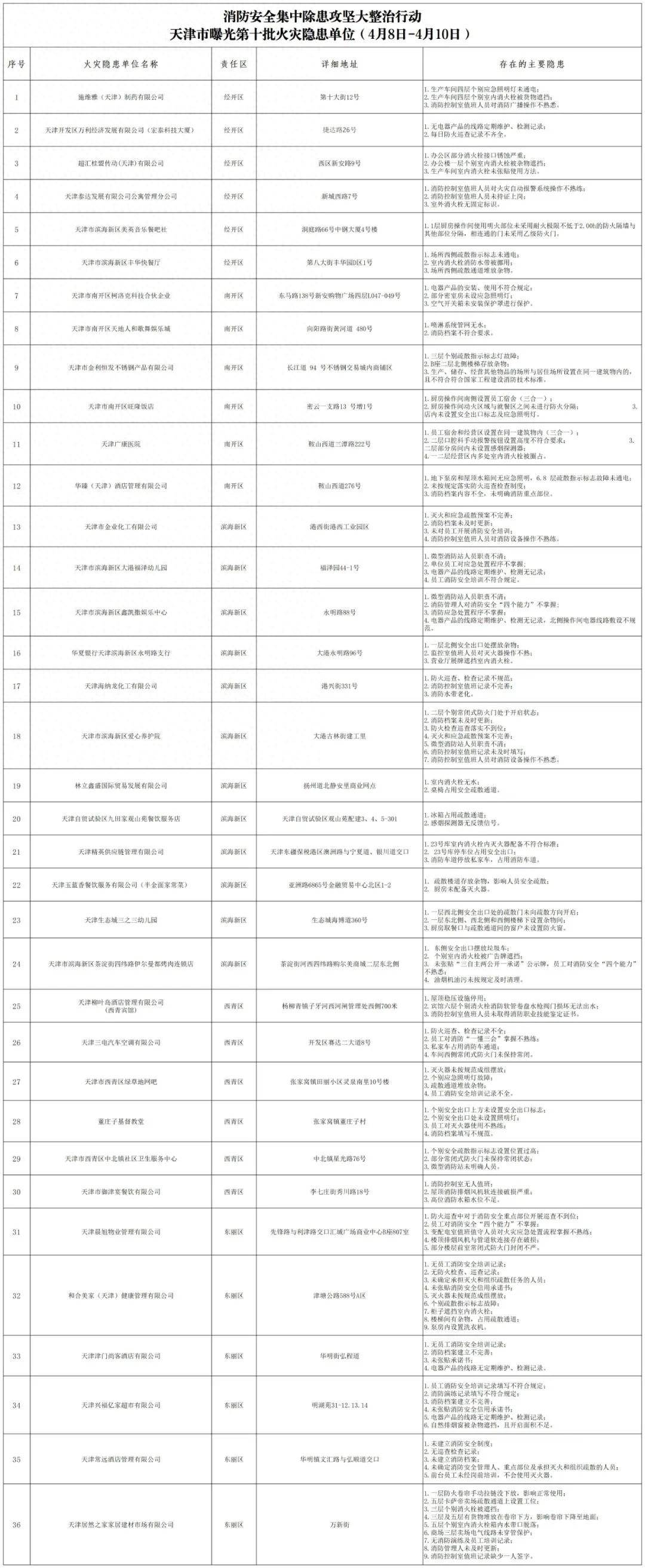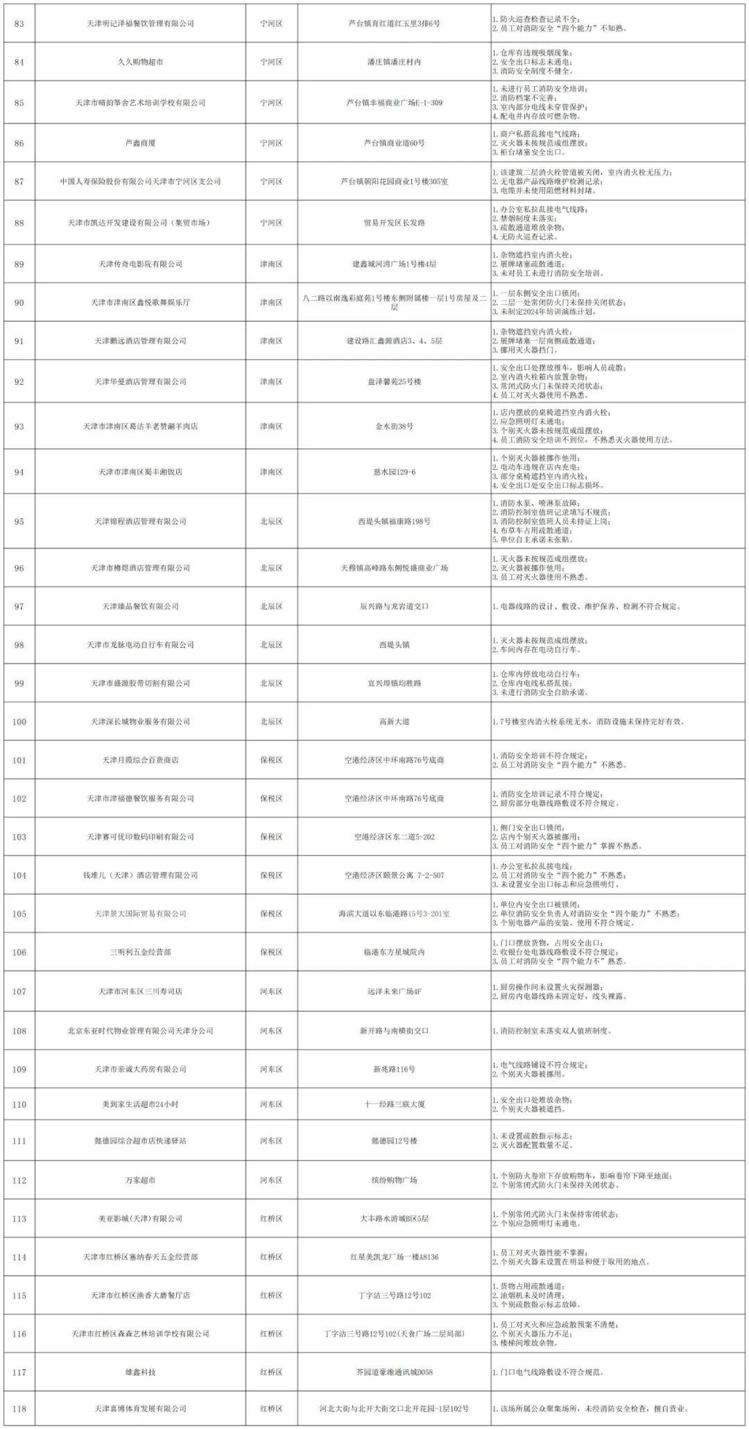 为进一步净化消防安全环境,充分发挥媒体和社会舆论监督作用,促进火灾隐患的整改,现曝光第十批118家火灾隐患单位(火灾隐患为2024年4月8日至4月10日)。单位名称如下: