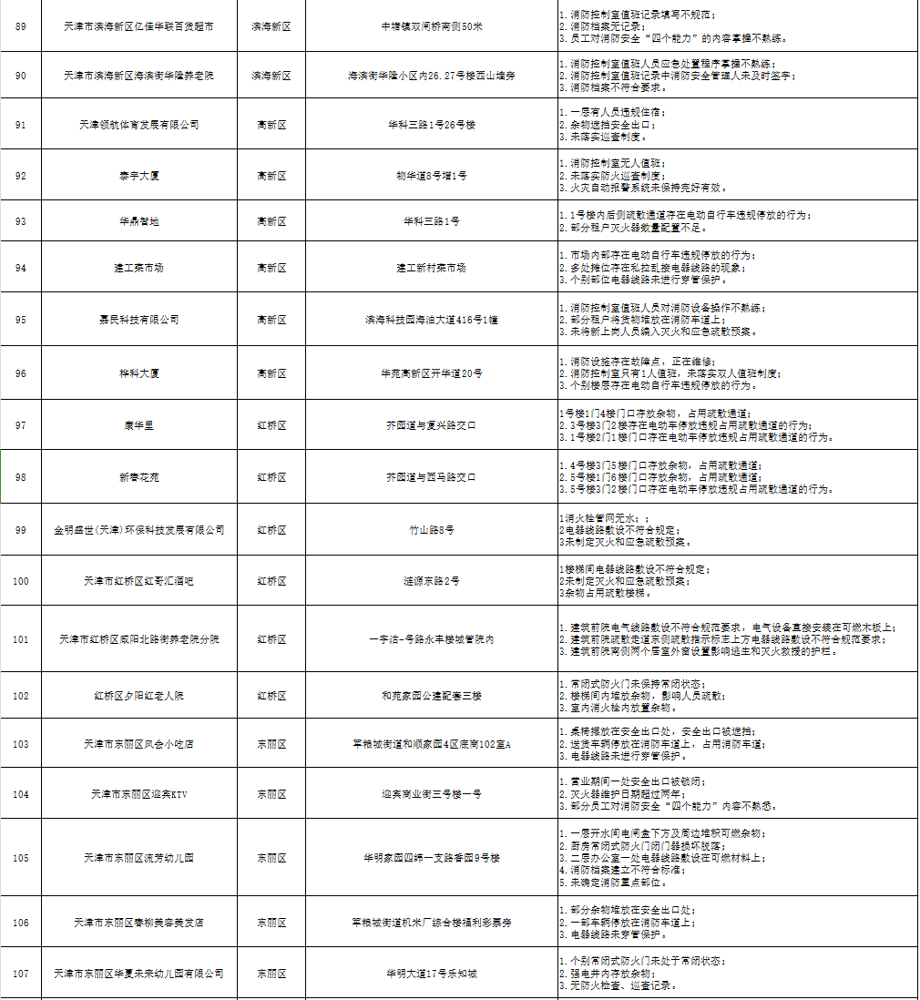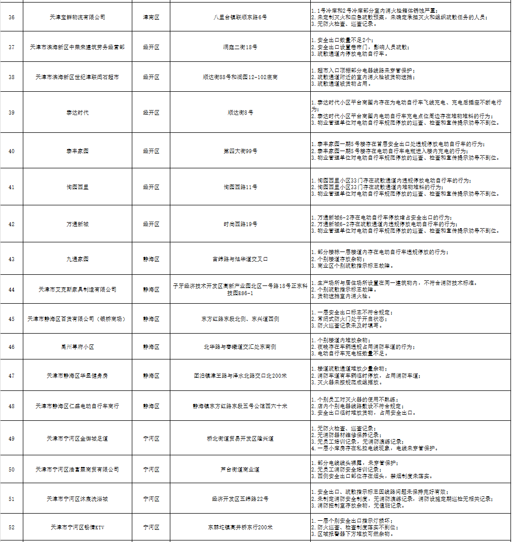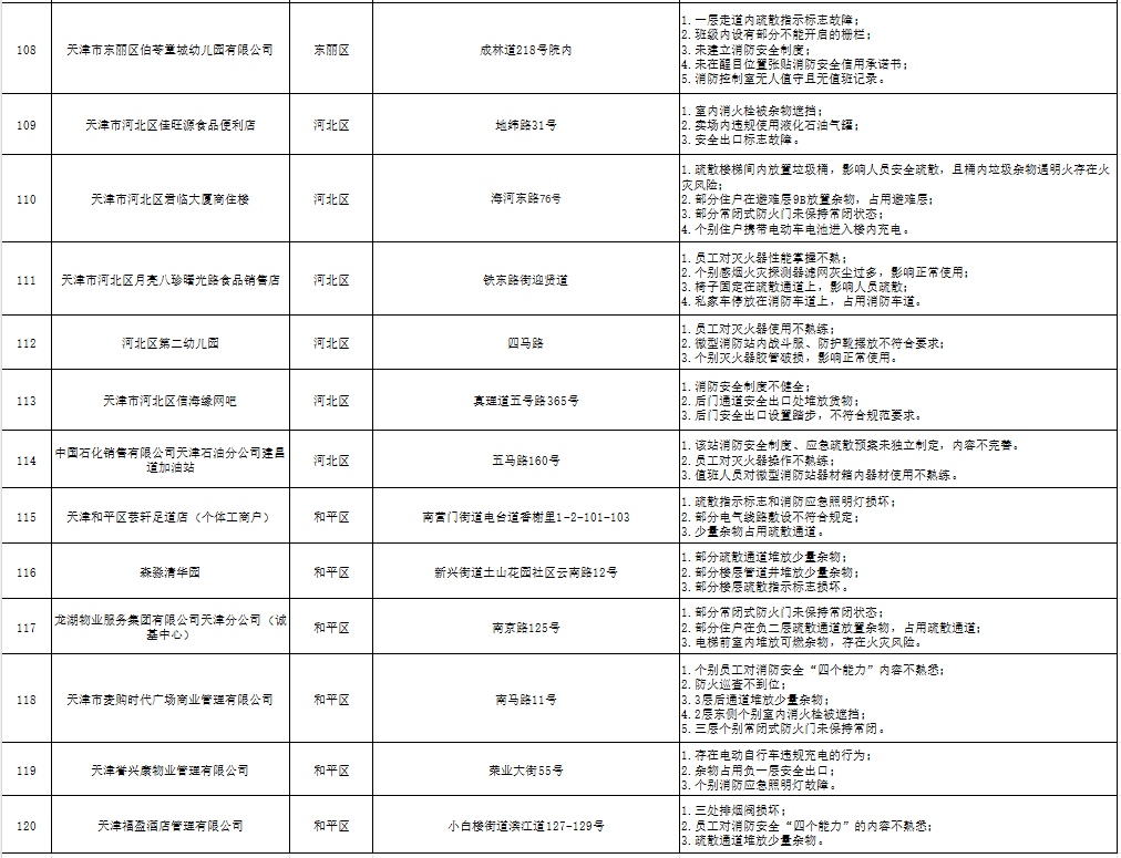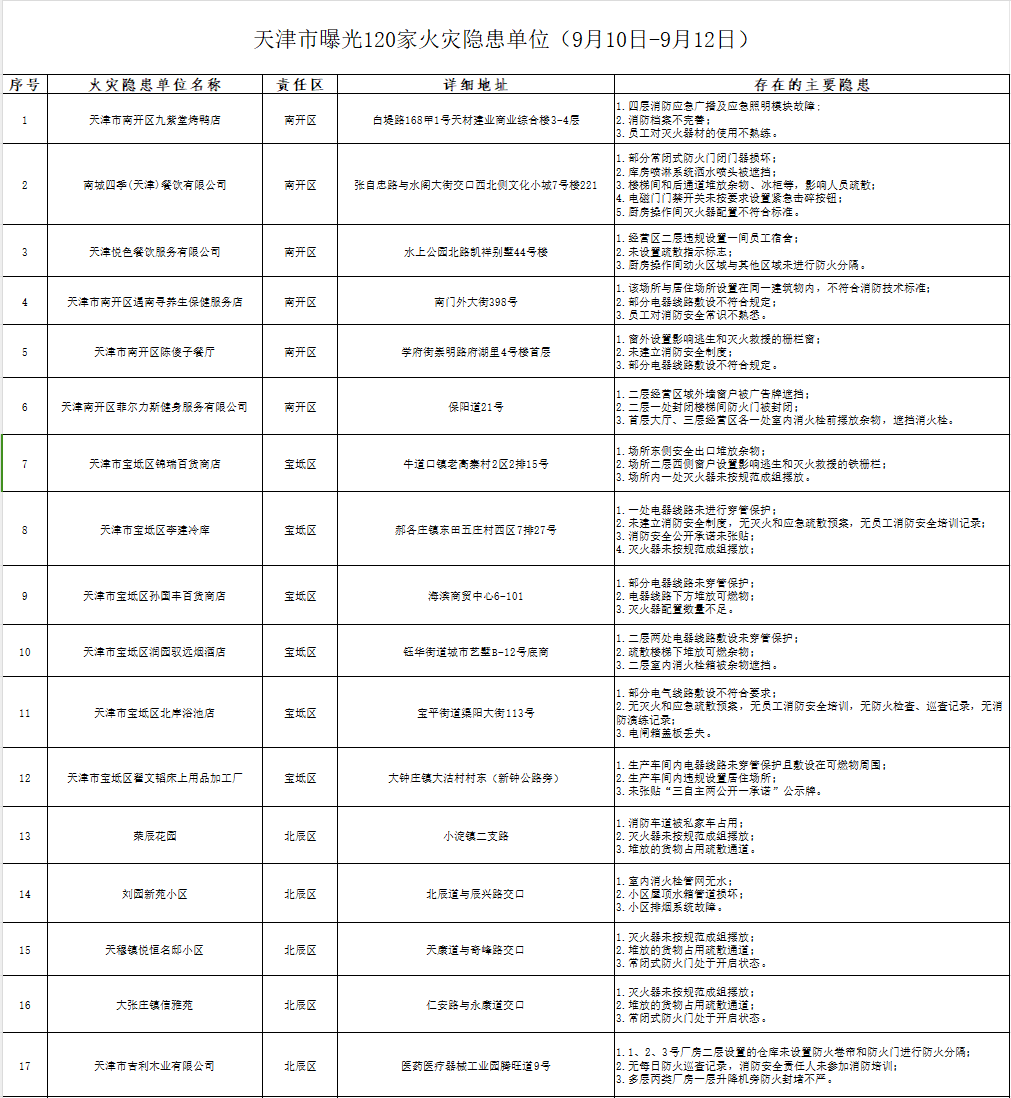天津市曝光120家火灾隐患单位(9月10日-9月12日)
