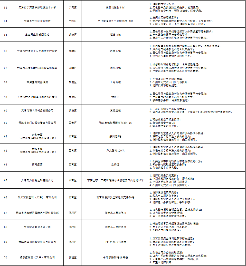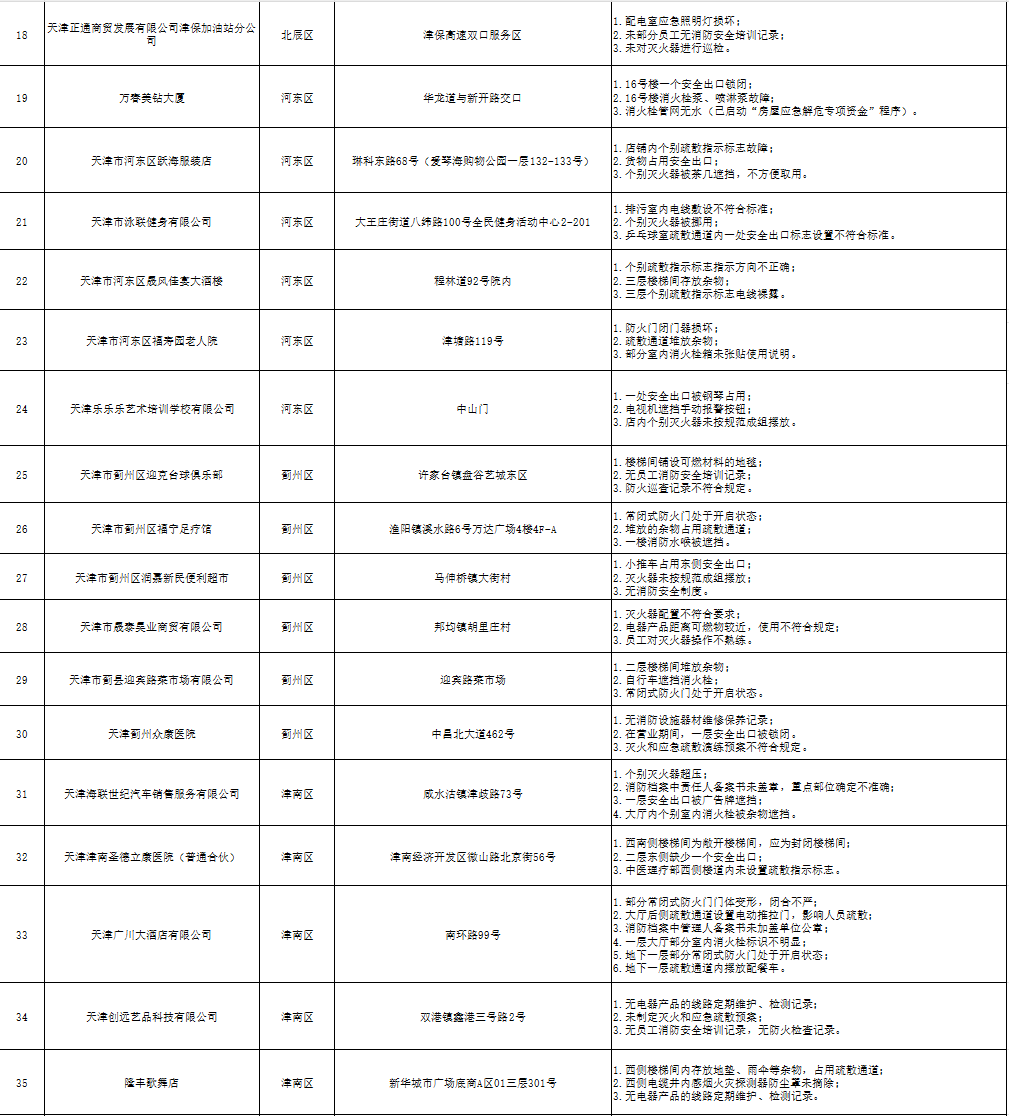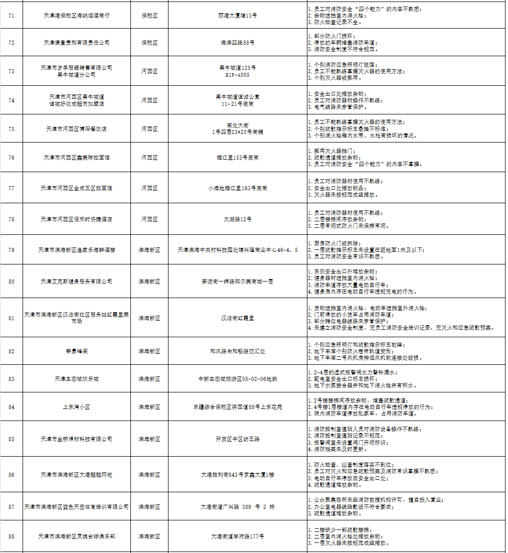 天津市曝光120家火灾隐患单位(9月10日-9月12日)