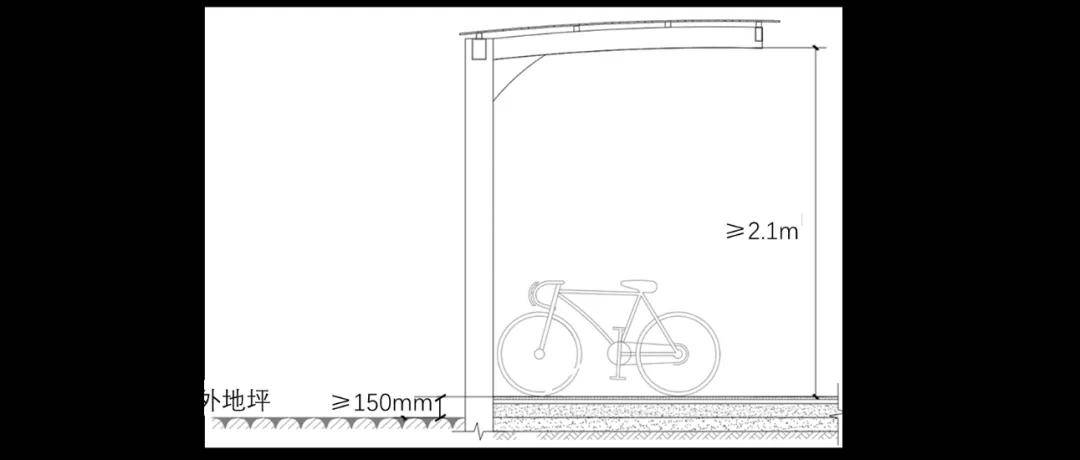电动自行车棚净空高度及地面与周边场地高差示意图