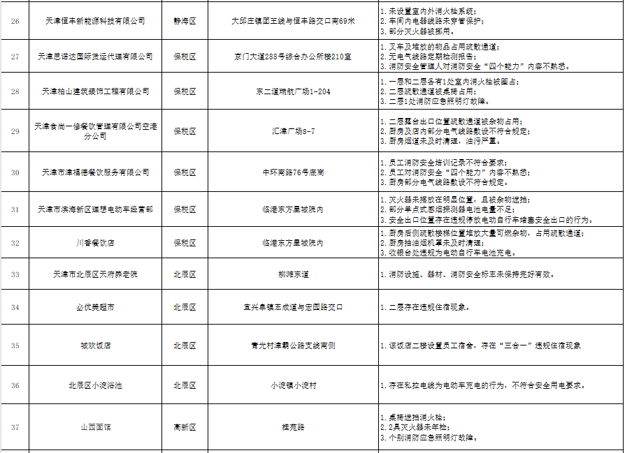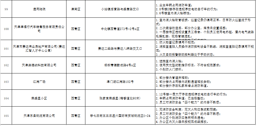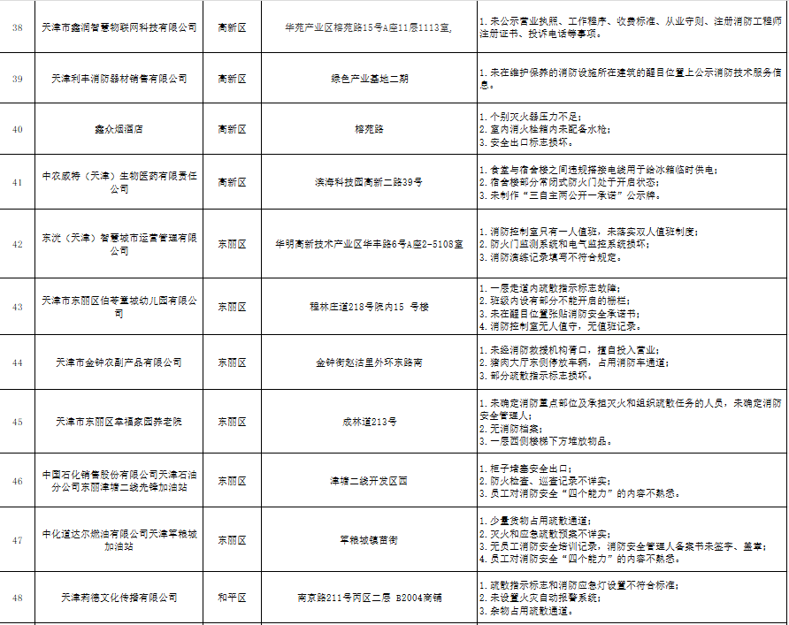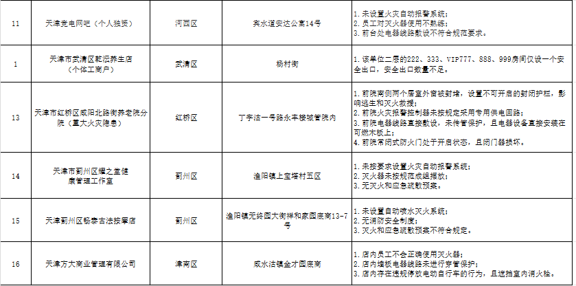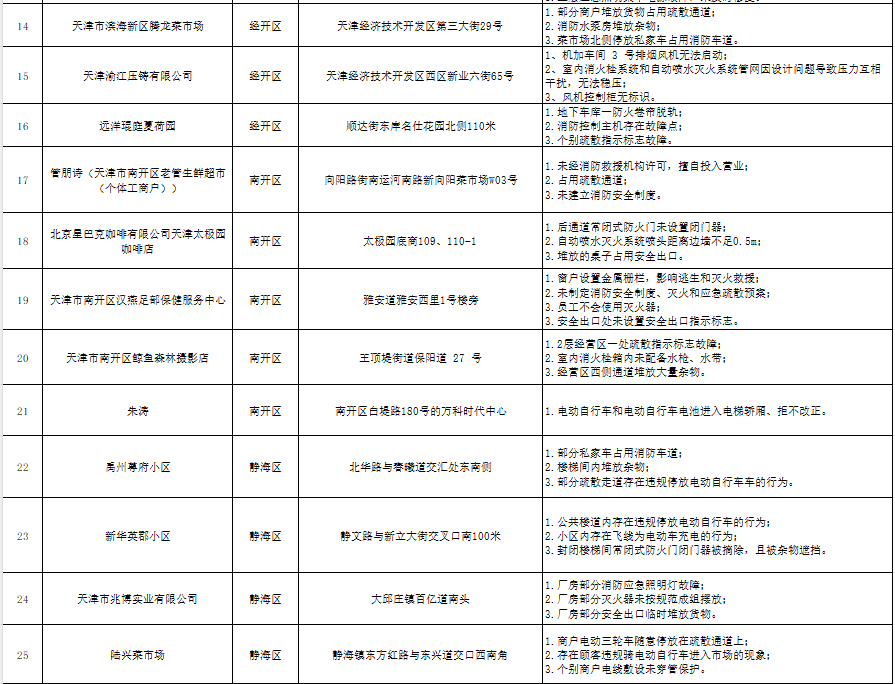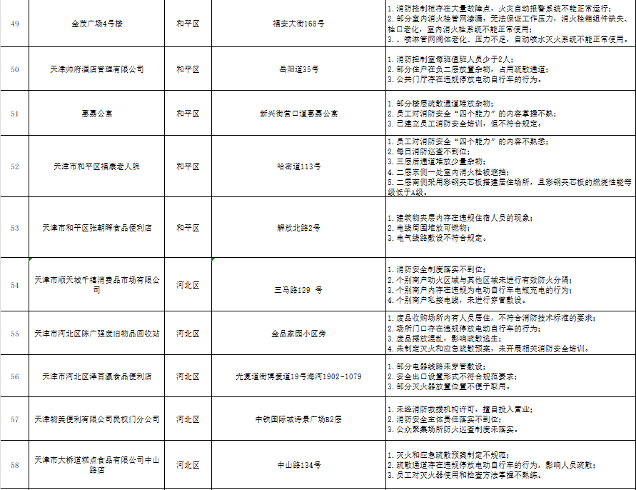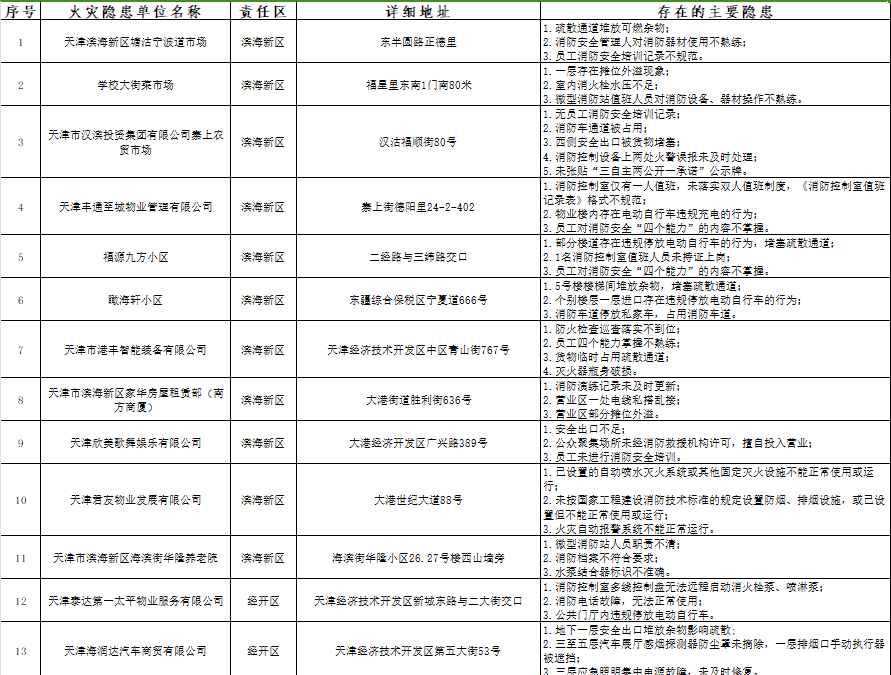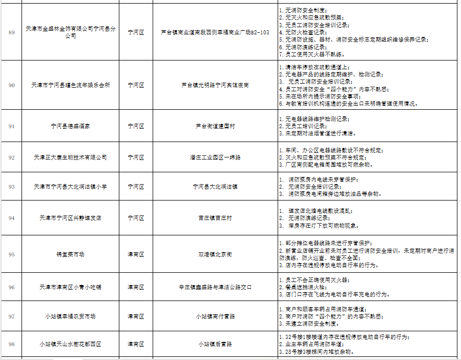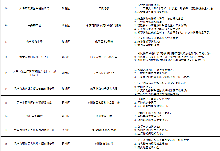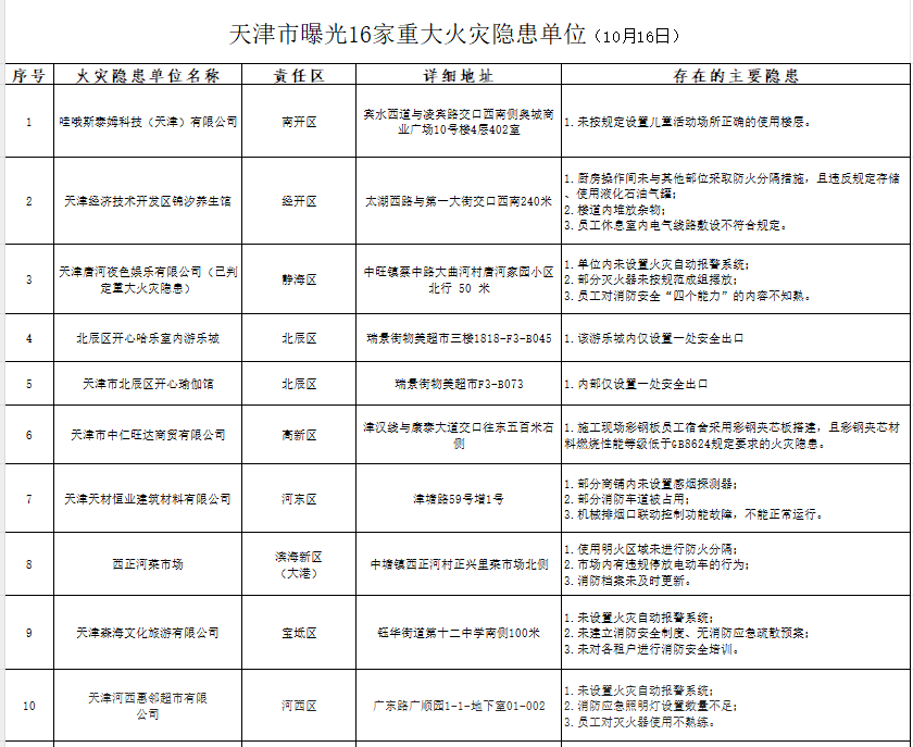 天津:曝光121家火灾隐患单位(2024年10月16日-10月18日)