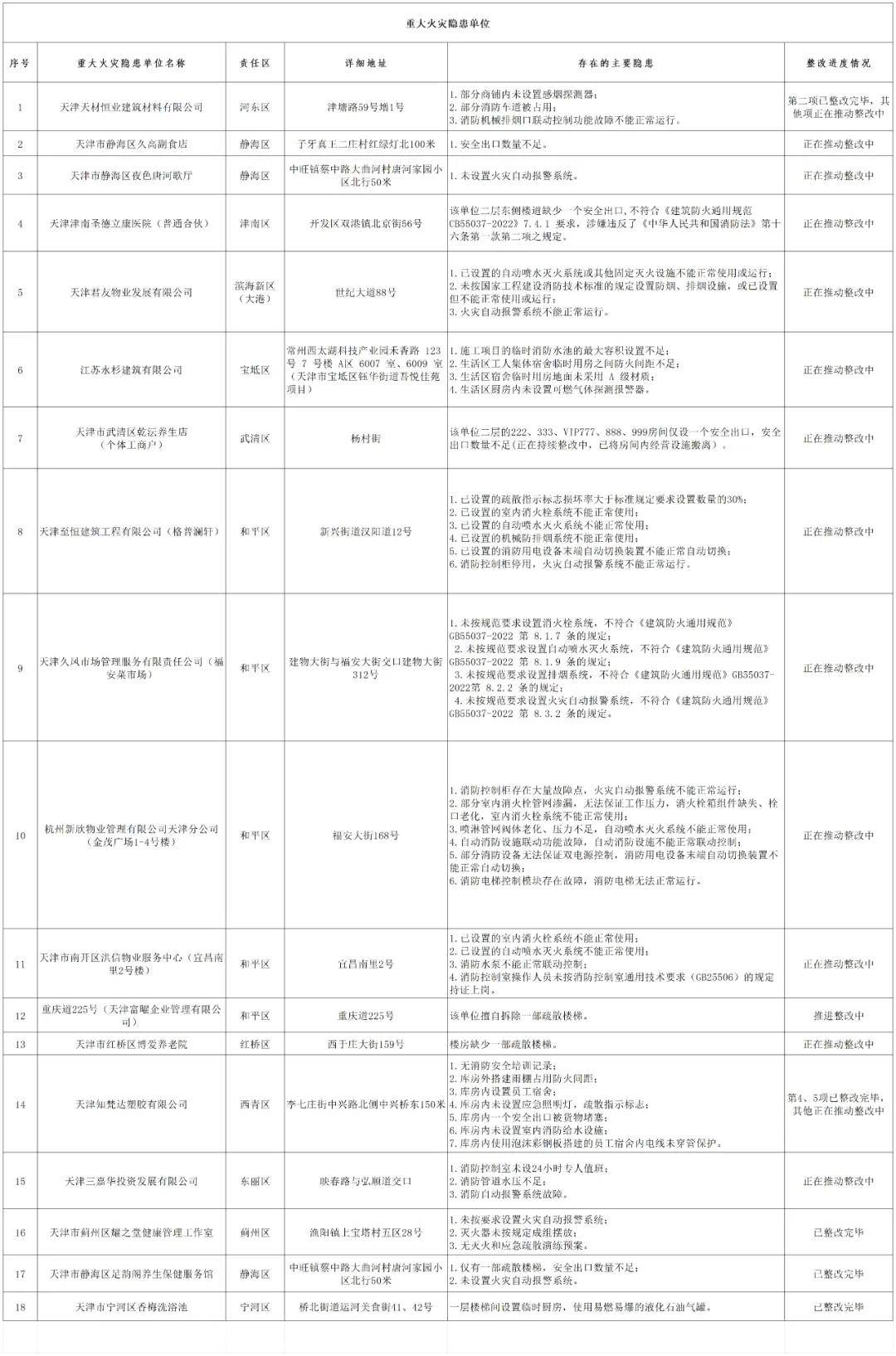 曝光台 天津市曝光18家重大火灾隐患单位
