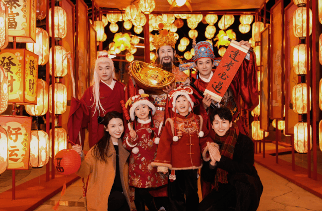 新春庙会热闹非凡,糖画、捏面人等特色摊位齐聚,年味十足。财神办事处、月老办事处、发财接头点等特色打卡点,趣味十足又出片,让游客轻松沾喜气。财神、月老、文曲星等神仙NPC也随时准备为游客送上新年祝福,还有随机惊喜小礼物发放。