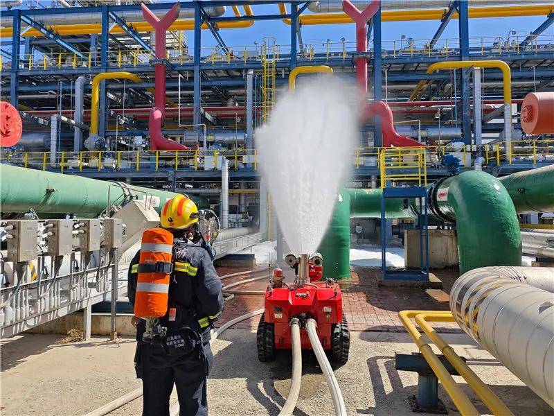 期间,厂区技术人员详细讲解了LNG船运接收、储存、汽化、外输作业等工艺处置流程以及厂区消防设施分布,并对全国典型战例进行总结剖析。演习过程中,模拟LNG海水汽化装置管道泄漏并发生火灾爆燃事故,总队迅速调集周边消防救援站和企业专职消防队赶赴现场处置。各参战单位第一时间利用高喷车、灭火机器人、遥控炮等装备进行冷却控火,并联合开展现场侦检、工艺处置、关阀断料、合力攻坚等火灾扑救行动。整个过程组织严密、响应迅速、处置高效,为今后处置同类灾害事故积累了宝贵经验。