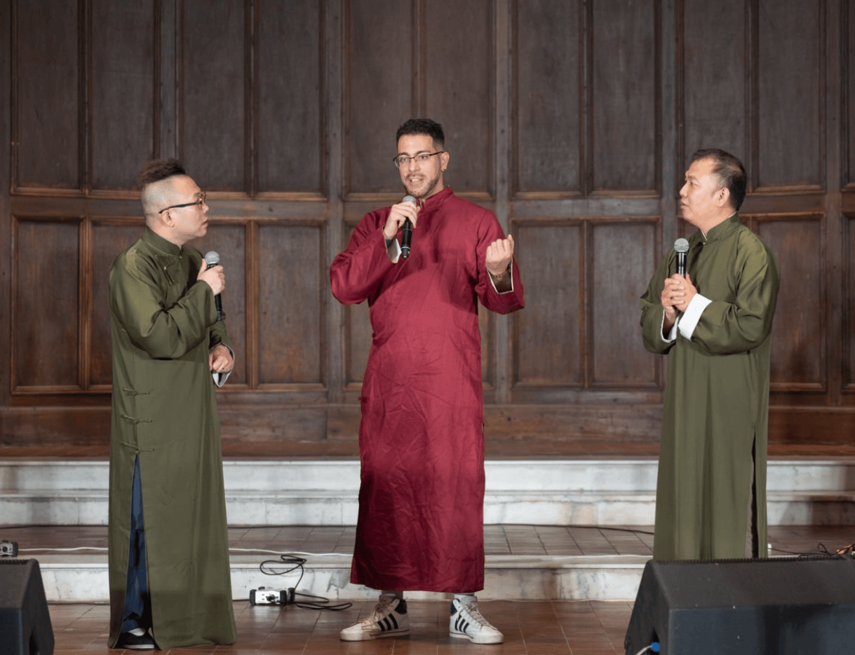 山河无恙,烟火寻常。来自伊朗的表演者用小提琴独奏了歌曲《如愿》,将中国观众熟悉的旋律注入波斯风情,琴弦流淌间尽显东方韵味,表达了对美好未来的向往和对爱的坚持。演出高潮则来自委内瑞拉“中国通”吴瑞龙的登场。这位用西班牙语演绎中国传统相声的南开大学教师,与中国相声演员李岩、王琨跨界演绎《说学逗唱》,地道的天津话引爆全场笑声与掌声。“音乐和笑声没有国界,”吴瑞龙表示。在天津的舞台用中文表演,也许这正是像吴瑞龙这样的外国友人对“上海精神”最真诚的致敬。