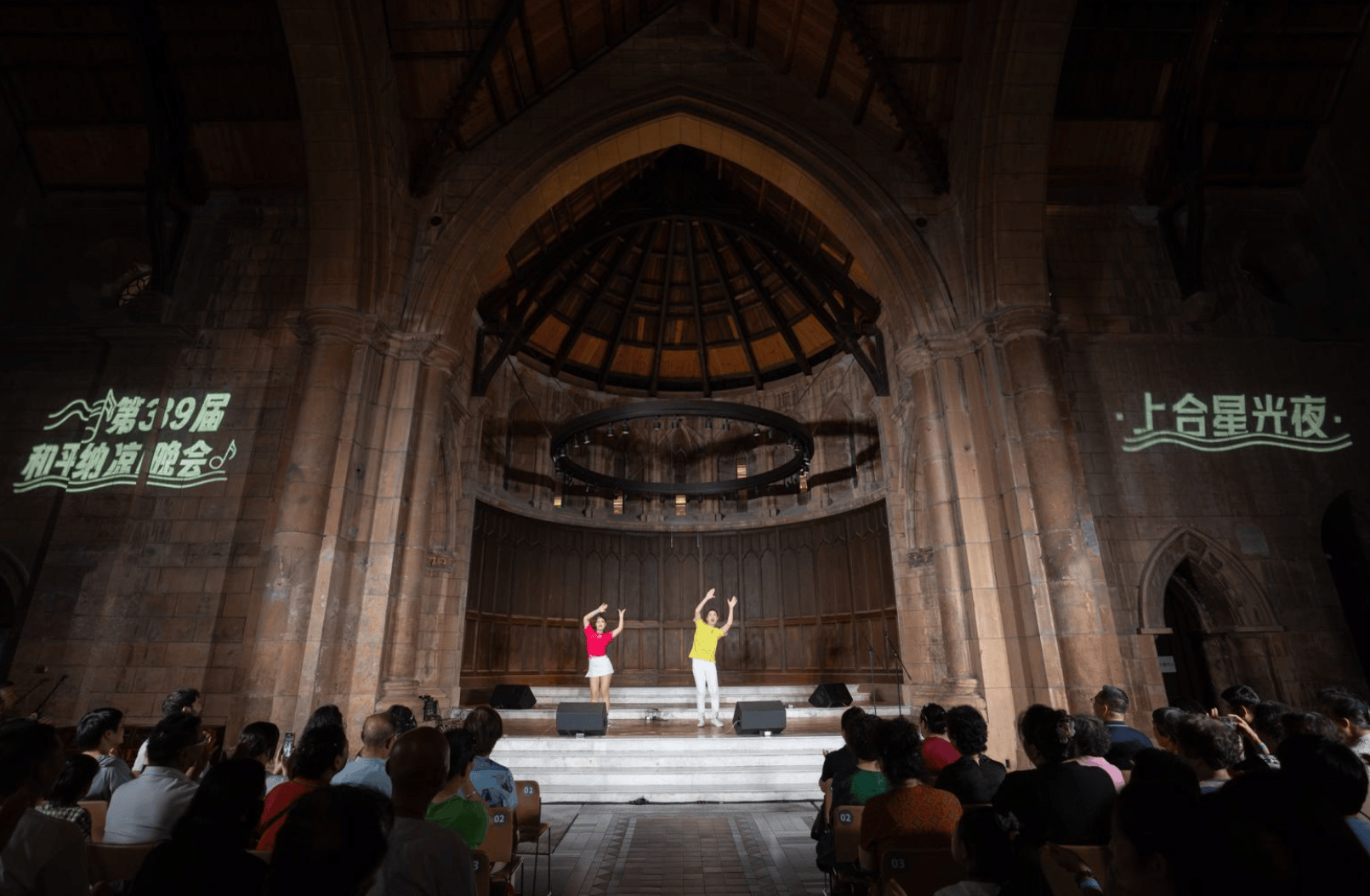 傍晚时分,夏风习习,悠扬的歌声从穹顶缓缓落下,浸润在斑驳的石柱缝隙里,此刻每个人都能感受到安里甘的美。初建于1903年的安里甘艺术中心,哥特式尖顶在夜色中划出优雅轮廓。这座历经沧桑的英式教堂,经保护性修缮后,如今已成为和平区文旅融合的典范地标,独特的声学穹顶与庄严氛围,为夜晚演出赋予了神圣而包容的舞台。“我60多岁第一次来到安里甘艺术中心,一进门眼前一亮,很震撼,很感动。咱们和平区让这个尘封百年的安里甘教堂华丽转身为艺术中心,我们普通市民不仅能在里面领略深厚的历史韵味,也能从纳凉晚会上欣赏到自己喜欢的音乐,作为和平区老百姓我太荣幸了,也很幸福。”一名家住和平区市民现场兴奋地说,“和平区每年都会组织很多文化惠民活动,我也经常参加,但把纳凉音乐会开在这么高大上的百年教堂里还是第一次。我想这也符合咱和平区的特点,艺术与烟火气并存。”