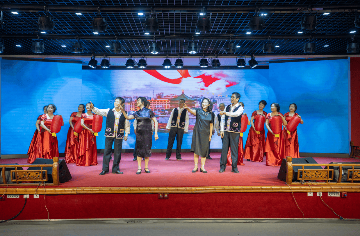 晚7时30分,在主持人温暖开场中,树德里社区选送的舞蹈《五星红旗》率先点燃舞台。舞者们以刚柔并济的肢体语言,将五星红旗的庄严与赤子深情完美交融,瞬间引燃全场激情。随后,歌声成为今夜最动人的注脚:轻快灵动的《阿惹》展现青春朝气;醇厚嗓音演绎的《小路》勾勒出时光沉淀的韵味;一曲《追寻》唱响了对理想信念的坚定守望;伴随《这世界那么多人》伴奏响起,温润声线抚慰都市心灵,引发观众轻声应和。南营门街道选送的群舞《人间烟火》成为全场温情亮点,市井巷陌的温情在艺术舞台上流淌。天津市老年人大学朗诵研究会带来的《如果有那样一个黄昏》,饱含岁月沉淀的声线吟诵生命感悟,“老有所乐”的从容境界赢得经久掌声。新疆路社区选送的歌舞《看山看水看中国》则以欢腾舞步与绚丽服饰,铺展出一幅流动的祖国山河画卷。