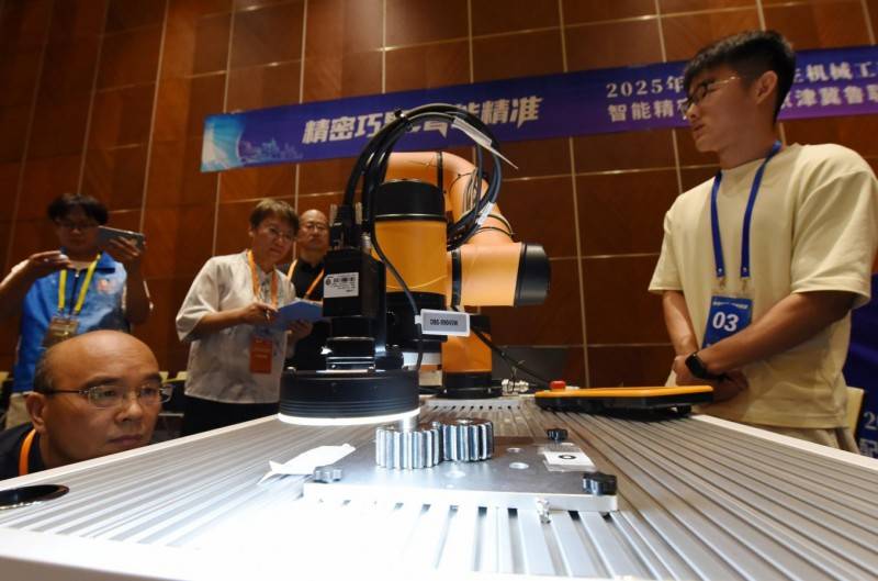 本次联赛作为国赛选拔通道,吸引了来自清华大学、北京理工大学、天津大学、河北科技大学、河北交通职业技术学院、烟台理工学院、青岛科技大学等数十所高校、近百支队伍参赛。比赛设置实操调试与答辩汇报两个环节,主要以齿轮传动系统的高精度装配为核心聚焦点,重点考核五大知识模块:装配基础知识、机器人操作基础、单目视觉检测技术、位姿解算方法及人机协作能力,旨在突出智能装备与传统工艺在实践中的融合创新应用,深度考察参赛者对跨领域技术整合的掌握程度,全面考察学生的创新思维与技术应用能力。经过激烈角逐,26支队伍脱颖而出,获得晋级全国总决赛的资格。
