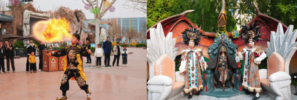 本次活动的重头戏是三大多元化演艺项目:“假面奇遇盛典”通过充满神秘色彩的假面舞蹈,带领游客走进奇幻的艺术世界;“傩舞驱邪”由演员进行传统傩舞表演,展现古人驱疫避邪的庄严仪式;更有“民俗变脸”表演融汇川剧变脸与喷火绝技,展现传统技艺的惊险与神奇,让游客在节庆氛围中领略中华传统文化的博大精深。