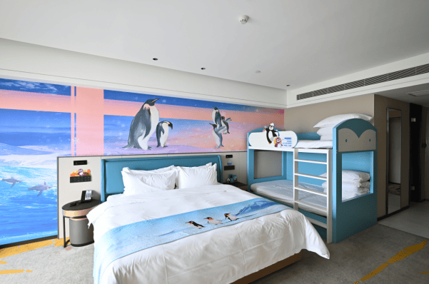 据了解,天津极地海洋度假区为海合安文旅旗下项目,坐落在天津滨海新区于响片区,占地面积18.7万平米。度假区集极地海洋公园、极地水乐园、汤浴中心、主题酒店群落、风情街区、河滨休闲走廊及游船码头于一体,致力打造服务全客群、覆盖全时段的综合旅游度假目的地。游客在此,既可近距离观赏6万只(尾)极地海洋动物,观看7大海洋欢乐秀,也可体验天津特色汤浴文化与本地美食,上千间主题客房更能满足不同游客的住宿需求。